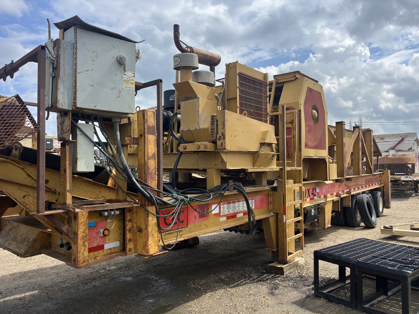 RD Olson Mfg. 512 Double deck 2626 hrs. - CAT diesel engine put in new by CAT 600 hr. ago. 2 fold out conveyors - 6" tipping grizzly - Ball Deck - Handheld remote for feed speed & tipping grizzly. Single axle, brakes & lights, road legal.