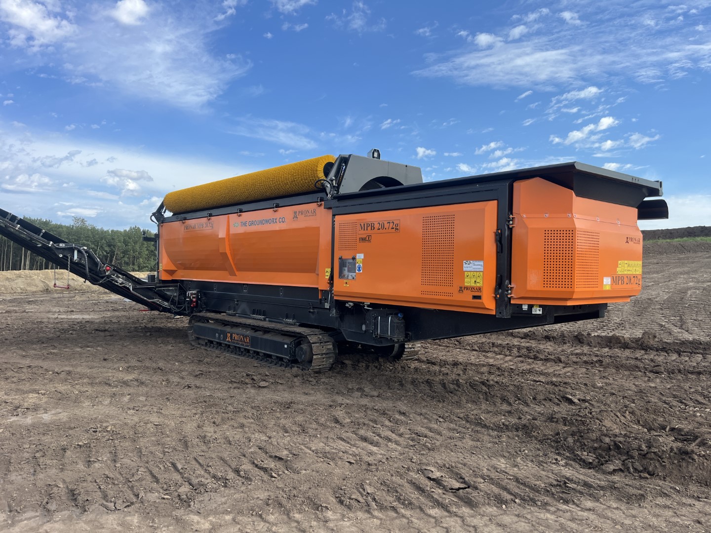 New 726 Pronar Trommel - CAT diesel engine, Tier 4, 7" x 26' x 5/8" steel punch plate non-plugging drum, 2 fold out conveyors, lowest feed height in industry, no ramp needed. Handheld remote for operation. Sale, rental RPO available.