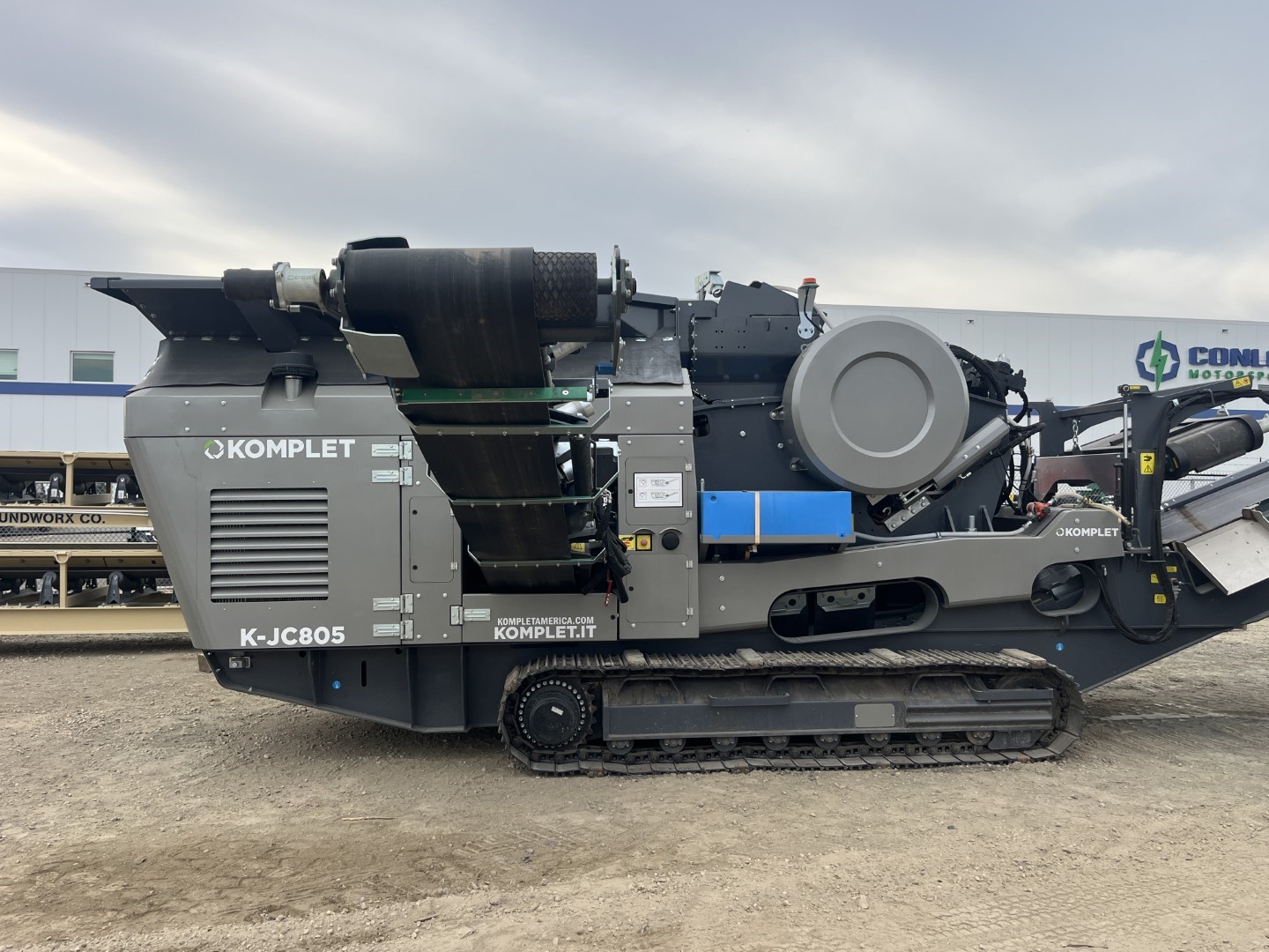 2023 Komplet jaw crusher - 414 Hrs. - 16" x 27" hydraulic adjust jaw, vibratory grizzly feeder. Track mounted, handheld remote control operation. 4 Cylinder diesel engine. Magnet for removing metal, ideal for concrete crushing.