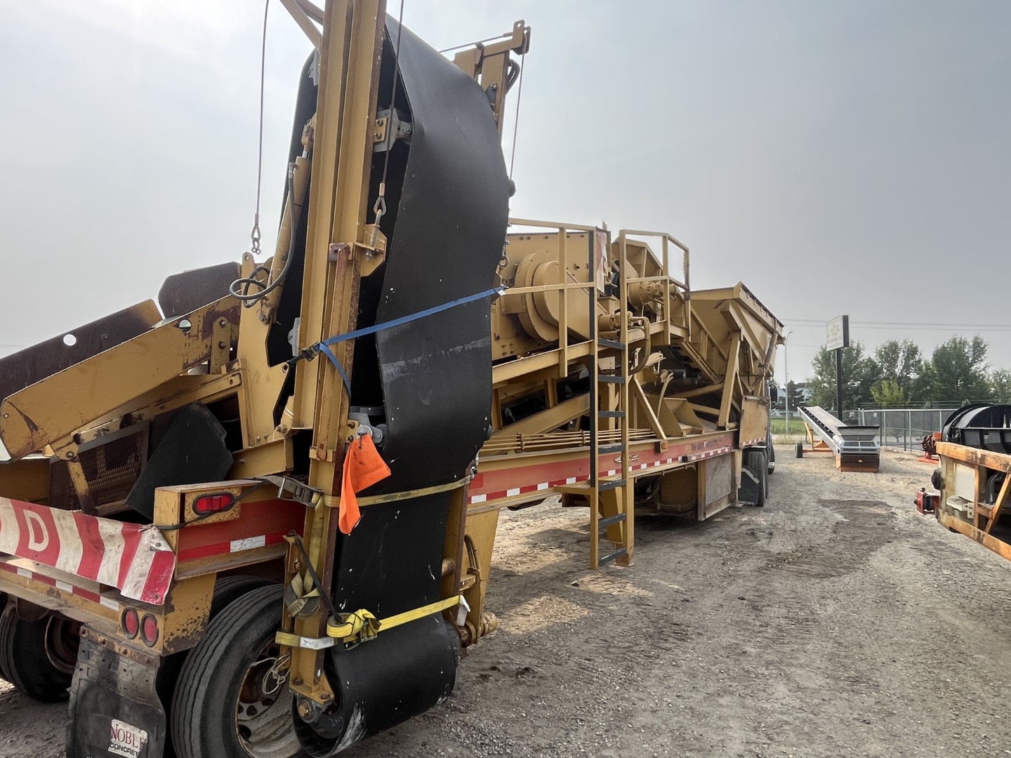 RD Olson Mfg. 512 Double deck 2626 hrs. - CAT diesel engine put in new by CAT 600 hr. ago. 2 fold out conveyors - 6" tipping grizzly - Ball Deck - Handheld remote for feed speed & tipping grizzly. Single axle, brakes & lights, road legal.